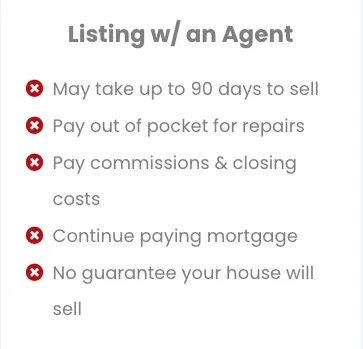 When you list your home with an agent they tell you that they can sell your house for "more money"... What they forget to mention is that a BIG chunk of your sales price goes towards closing costs and their 6% commissions. That means you lose out on a lot of the money you sell your house for. When you sell to us you keep all the money we give you!